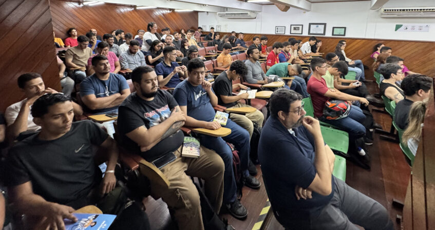 A programação contou com a presença de grandes nomes que compuseram a mesa de honra: o Vice-Presidente do CREA-PA, Eng. de Controle e Automação, Everton Ruggeri, o Eng. Químico e Coordenador dos cursos de Engenharia da UNAMA, Luiz Felipe Pereira, a Acadêmica de Engenharia Civil e Coordenadora Estadual do CREAJr Pará, Milena Gonçalves, e o Diretor Geral da Mútua-PA, Eng. Sanitarista Josué Rocha. A noite também foi marcada pela palestra sobre “Como a IA vem transformando o Mercado de Trabalho”, ministrada pelo funcionário do Conselho, Ray Fran Pires, trazendo reflexões inspiradoras sobre tecnologia e futuro.