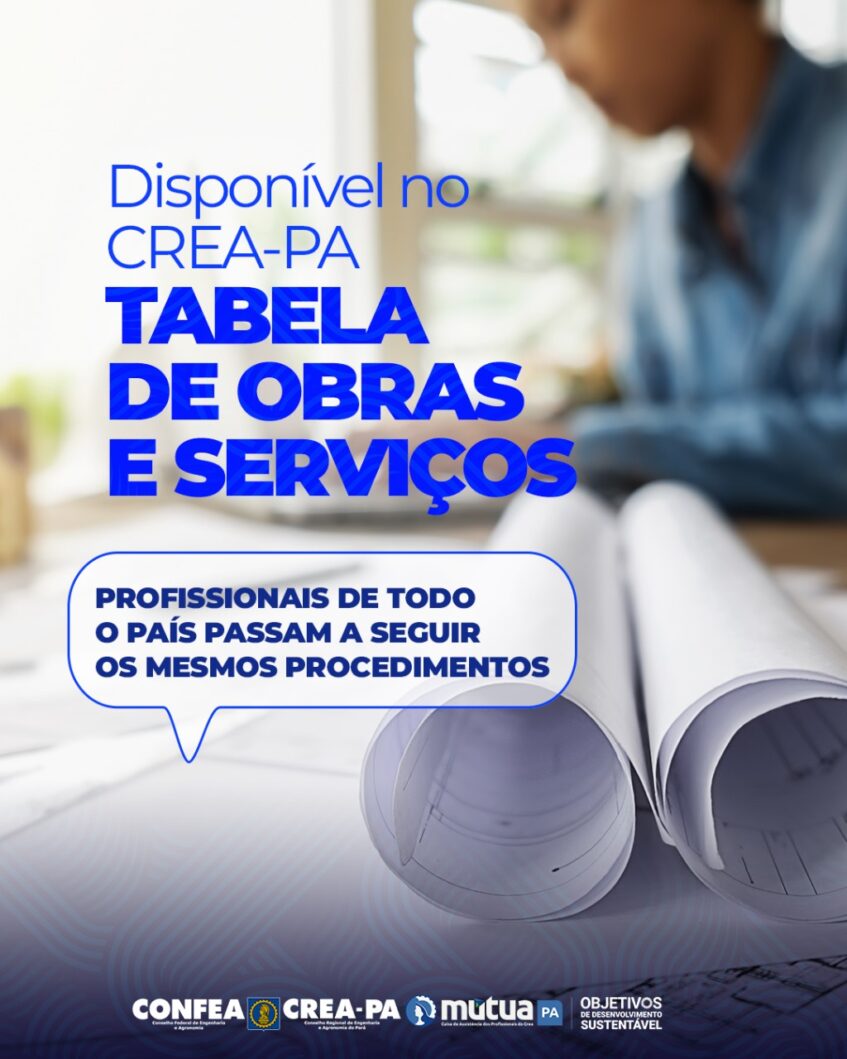 O CREA-PA implementou a Tabela de Obras e Serviços (TOS) com referência nacional do CONFEA, atendendo à Decisão Plenária 1853/2018, que determinou a unificação da TOS para todos os CREAs, conforme o artigo 36 da Resolução nº 1.025/2009.