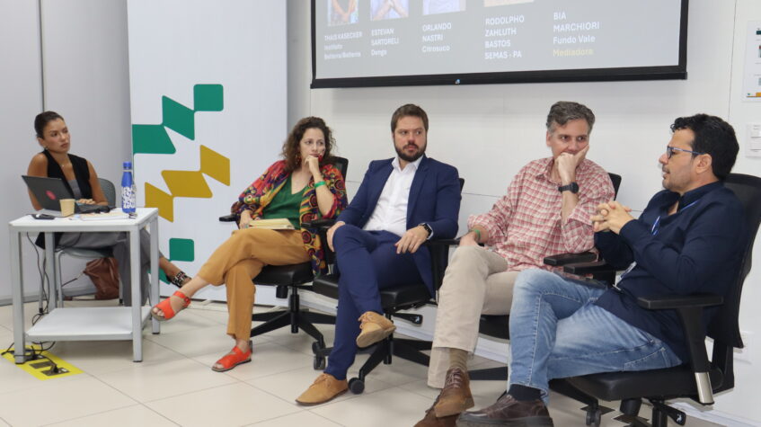 Estiveram presentes no Painel, como mediadora, a Engenheira Agrônoma, Bia Marchiori , que atua no Fundo Vale na frente de sistemas produtivos sustentáveis; como convidados, Diretora de Programas do Instituto Belterra, Thais Kasenker; Cofundador e CEO da DENGO CHOCOLATES, Estevan Sartoreli; Gerente ESG na Citrosuco, Orlando Nastri e Secretário Adjunto da Secretaria Adjunta de Gestão e Regularidade Ambiental – SAGRA da SEMAS-PA, Rodolpho Zahluth Bastos. Os profissionais promoveram um momento de networking , com o objetivo de construir soluções concretas para os desafios ambientais, sociais e culturais na região amazônica.