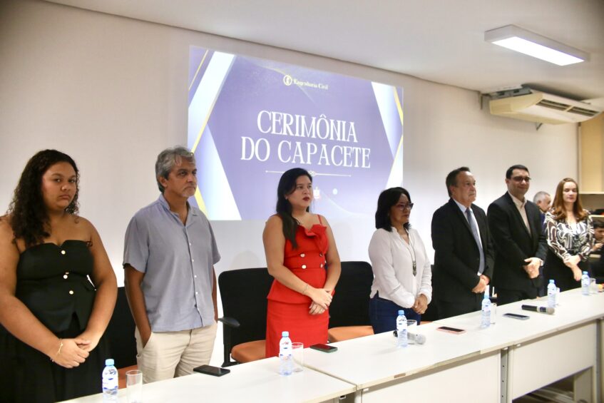 Ocorreu nesta última sexta-feira (23/01), no Centro Acadêmico de Engenharia Civil (CAEC) da Universidade Federal do Pará (UFPA) a Cerimônia de Capacete com a presença de 15 discentes do curso, que celebraram o andamento de 50% e 70% da graduação. Um momento simbólico, mas também de muita conversa importante para engajar e dar ânimo à caminhada rumo ao bacharelado desses estudantes, e assim tornarem-se engenheiros(as) civis com registro profissional junto ao CREA PA.