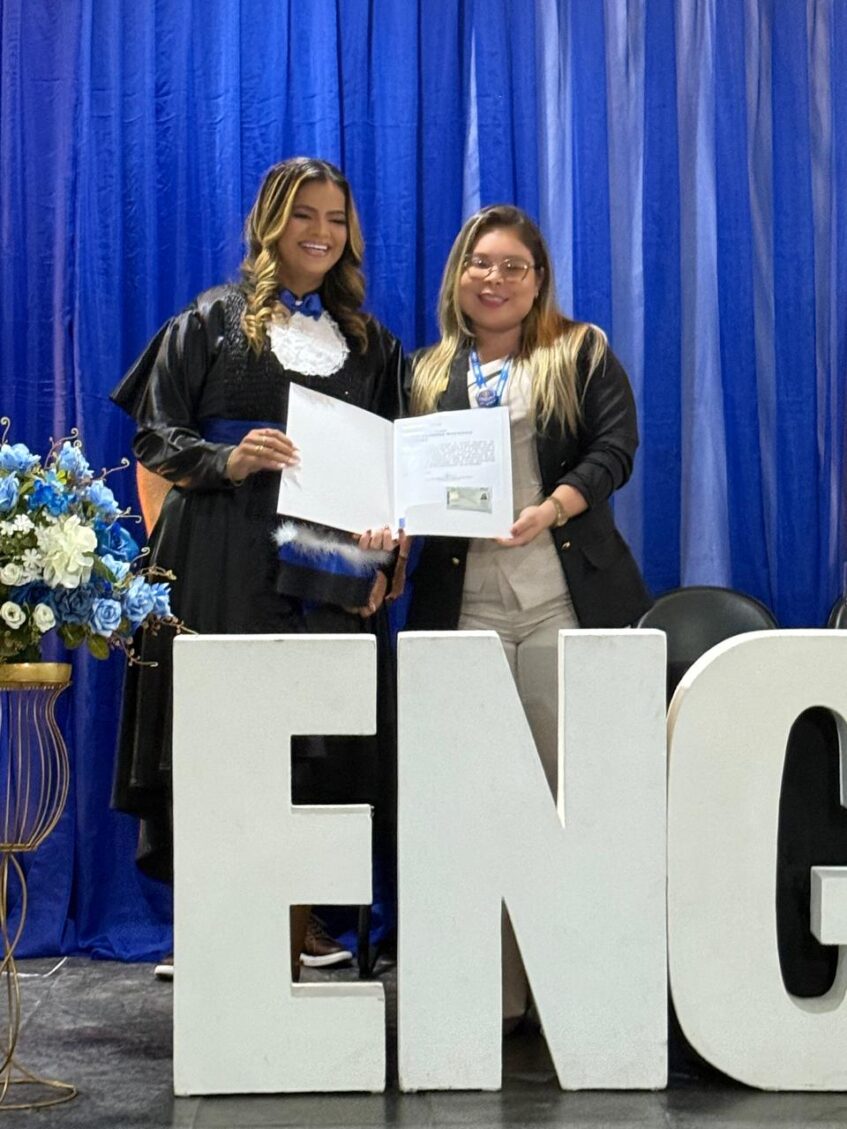 Representando a presidente do CREA-PA, engenheira civil Adriana Falconeri, a instituição foi representada pela Inspetora Especial de Inhangapi, engenheira de pesca Cássia Bruna Vieitas, que participou da cerimônia em nome do Conselho, reforçando o compromisso do sistema profissional com a valorização da formação acadêmica e a inserção responsável dos novos profissionais no mercado de trabalho.