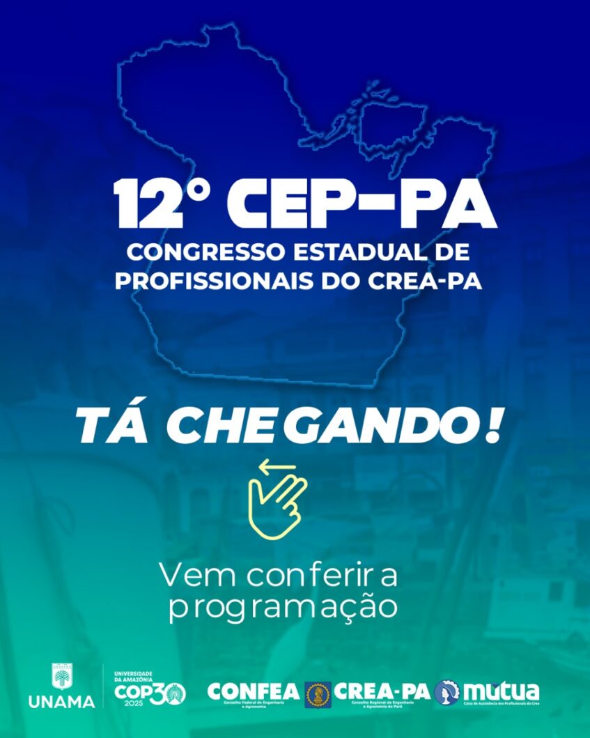 A capital paraense será palco, nos dias 5 e 6 de agosto, do 12º Congresso Estadual de Profissionais (CEP), um dos principais momentos de escuta e construção coletiva em todo o país. O evento será realizado na UNAMA Alcindo Cacela – Auditório David Mufarrej, reunindo profissionais das engenharias, agronomia e geociências para definir propostas e eleger os representantes que levarão as pautas do Pará para o Congresso Nacional de Profissionais (CNP).