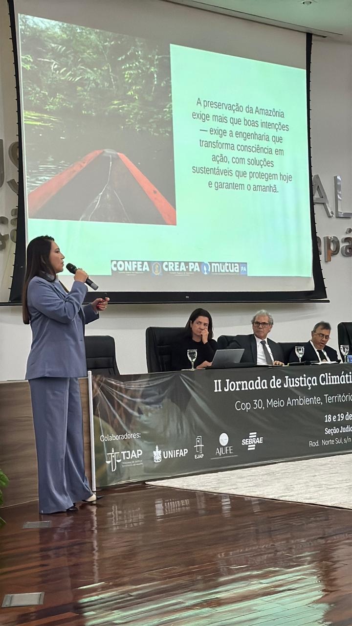 O Conselho Regional de Engenharia e Agronomia do Pará (CREA-PA) representado pela Presidente, Engenheira Civil, Adriana Falconeri, participou nos dias 18 e 19 de agosto, a Seção Judiciária do Amapá, em Macapá, sediou a 2ª Jornada de Justiça Climática e Transformação Ecológica da 1ª Região, promovida pela Escola de Magistratura Federal da 1ª Região (ESMAF). O evento ocorreu no início da Semana da Pauta Verde, uma iniciativa do Conselho Nacional de Justiça (CNJ) para impulsionar a pauta ambiental no Judiciário.