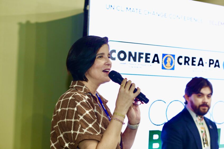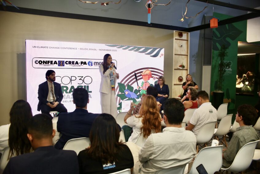 “Estar com um estande do Sistema CONFEA/CREA e Mútua da COP30, na Green Zone, é ver a engenharia brasileira ocupando o espaço que ela merece, com técnica, responsabilidade e compromisso com o futuro do planeta” disse Adriana.