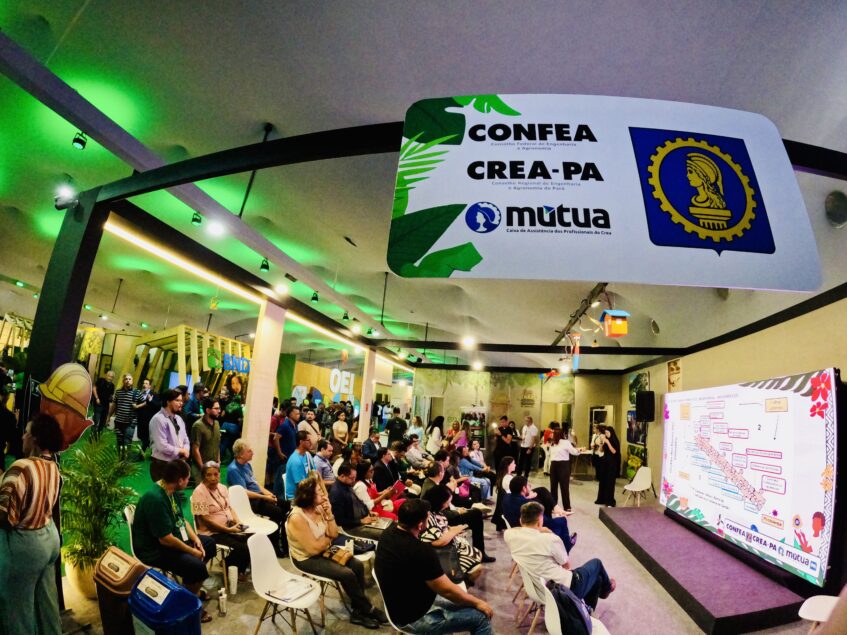 O Conselho Federal de Engenharia e Agronomia (CONFEA), através do Conselho Regional de Engenharia e Agronomia do Pará (CREA-PA) e da Caixa de Assistência dos Profissionais (Mútua) marcam presença com estande próprio na Green Zone (Zona Verde), espaço que reúne sociedade civil, instituições, governos e movimentos de todo o mundo em busca de soluções inovadoras para uma transição climática justa e sustentável.