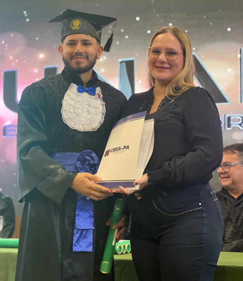 “Ao todos foram 4 carteiras, 2 de Engenharia Civil e 2 de Engenharia Elétrica. A entrega da carteira profissional já na formatura é um gesto que simboliza o início oficial da carreira, com todos os direitos e responsabilidades que a profissão exige. Essa parceria com a UNAMA é fundamental para aproximar o Conselho dos acadêmicos e reforçar nosso compromisso com a valorização e a ética na engenharia” disse Sarah.